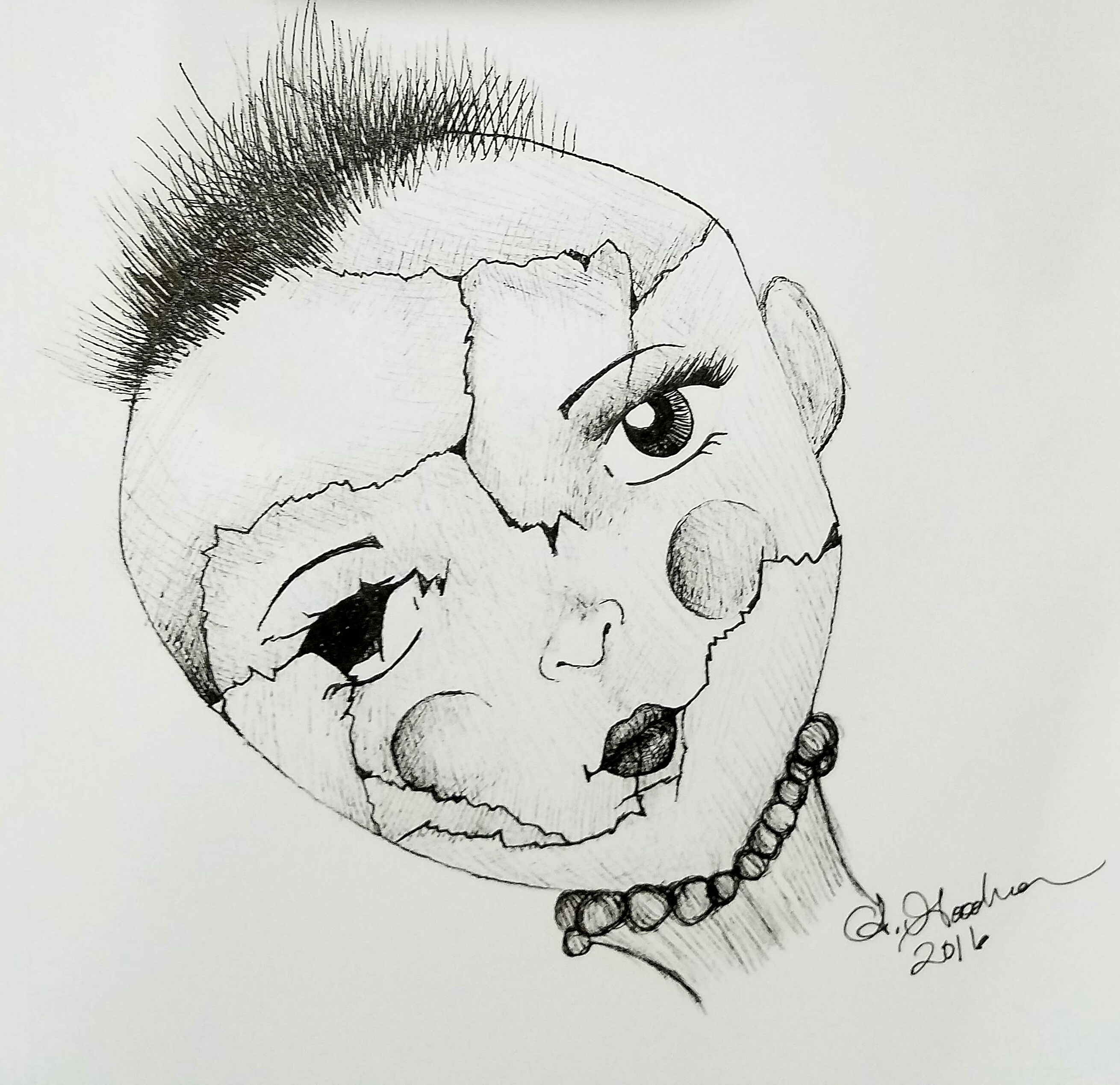 “Inktober Day 9: Doll” ©2016 alecia goodman to present
