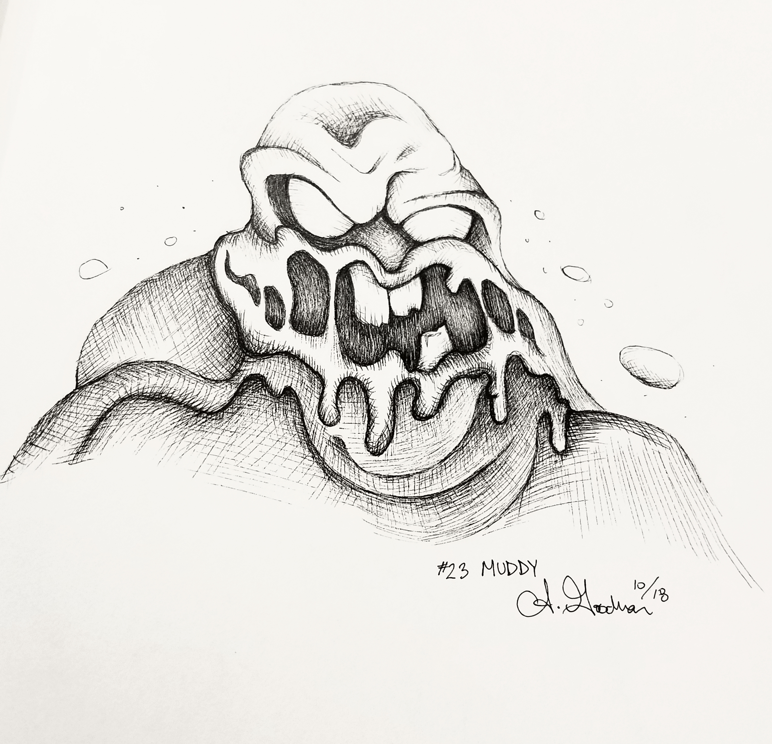 2018 Inktober Day 23 Muddy drawing of mud monster by alecia goodman