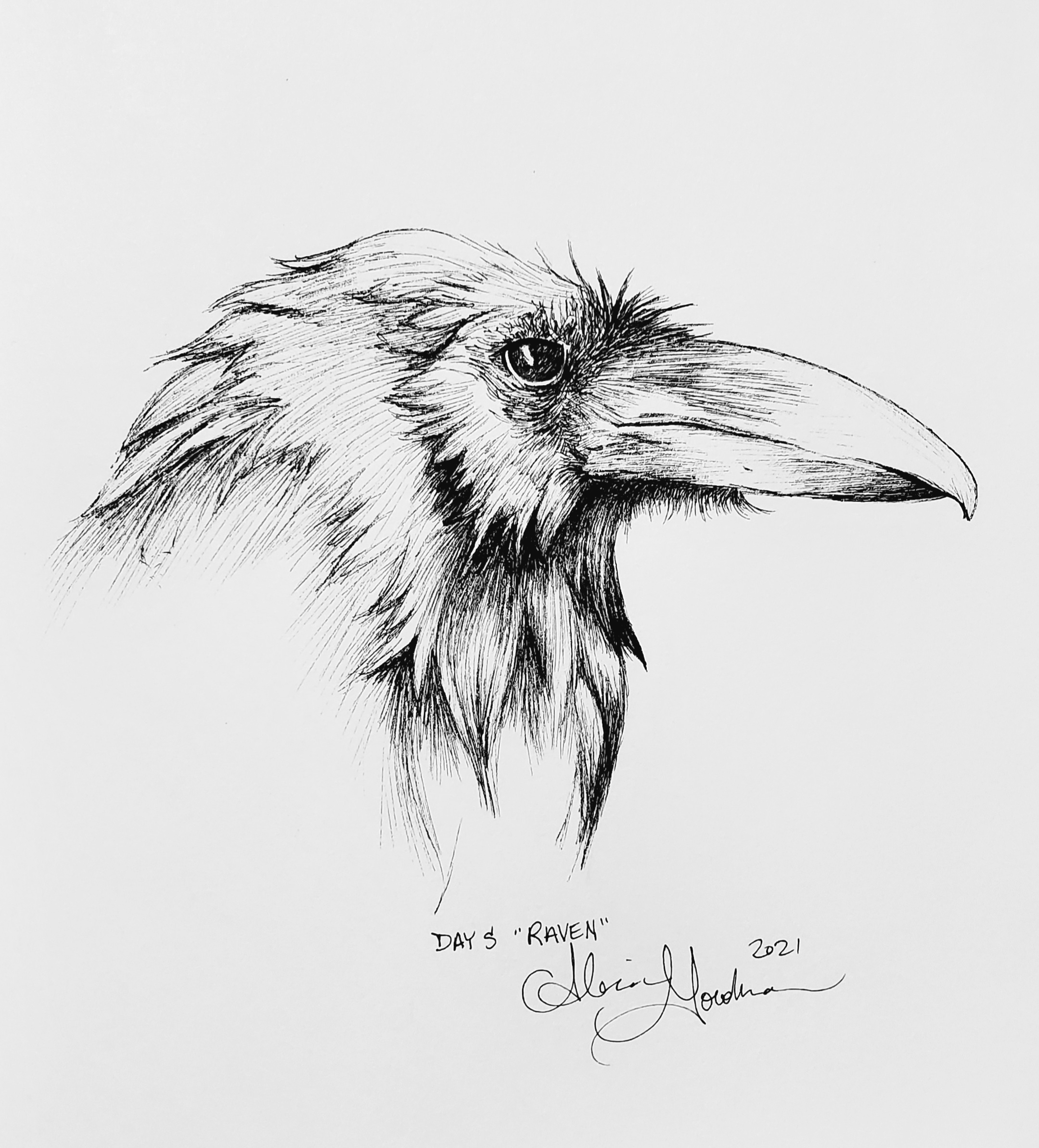 Still catching up…I kept my eye on all the scavengers in parking lots recently. They are incredibly smart and can even hold grudges. They are known in myth and lore throughout the ages. Loved getting to draw another one. #Inktober202, #ink, #art, #raven, #feather, #fly, #aleciagoodman